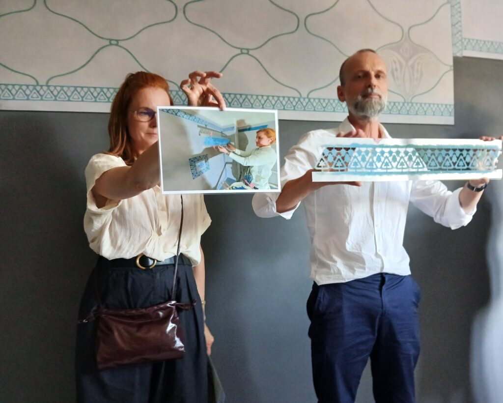 Dank der finanziellen Unterstützung der Freunde der Mathildenhöhe konnte das Projekt im Sommer 2025 zügig umgesetzt werden. Dr. Jennifer Verhoeven, Landesamt für Denkmalpflege und Koordinatorin der UNESCO-Welterbestätten Hessen, und Olaf Köhler, Leiter des Denkmalschutzes und der Denkmalpflege in Darmstadt, freuten sich sehr, dass sie dem großen Puzzle, das die größte der UNESCO-Villen auf dem Welterbegelände mit ihren vielen Zimmern darstellt, wieder ein kleines Stück Erkenntnis und Anschauung hinzufügen konnten.